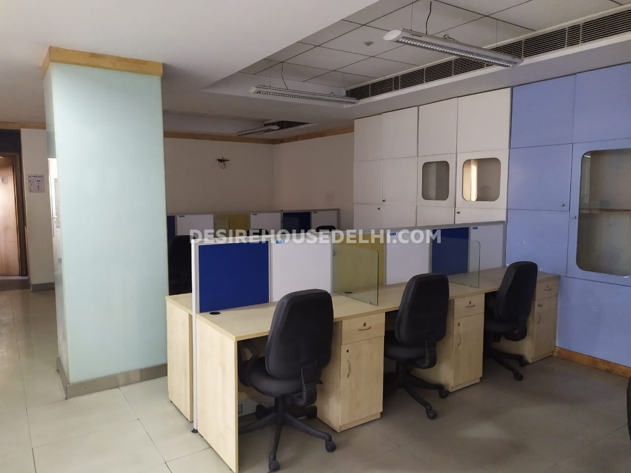 Commercial office:- Fully furnished ready to move office in Okhla phase I, First floor, Area 4800 sq.Ft. Having 5 cabins, 50 work-stations, 1 conference, reception, 1 UPS room, Attached pantry & 3 washrooms, Parking, At the rent of Rs. 2,50,000/-