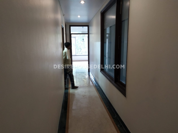 Facing park & east Ground floor with Lawn for rent in Safdarjung enclave, Having 3 bedrooms, drawing, dinning room with attached bathrooms, servant quarter, big lobby, Plot size 200sq.yd, Parking At the rent of Rs 85,000/-