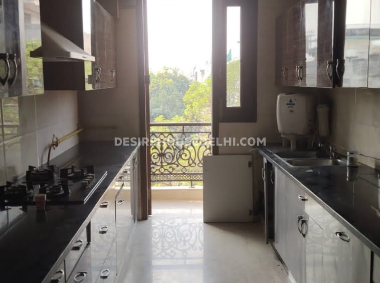 Fully furnished 4 bedrooms attached 4 bathrooms drawing/dining modular kitchen available for rent in Greater Kailash 2 enclave, plot size 250 sq.yd, Third floor terrace with lift,3 side open, Adjoins park, corner plot, Newly build, Stilt parking, independent gate, superb location at the rent of Rs 1,30,000/-Negotiable