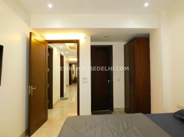 Ready to move park facing fully furnished builder floor in Greater Kailash 2 opposite Savitri cinema complex Third floor with lift spacious 3 bedrooms, drawing, dinning room build on 250sq.yd with attached 3 bathrooms, modular kitchen, servant quarter, acs in all rooms, fully power backup, lift, Italian marble flooring, open three side, only 4 year old, 1 stilt car parking, posh location at the rent of Rs 1.10lac..